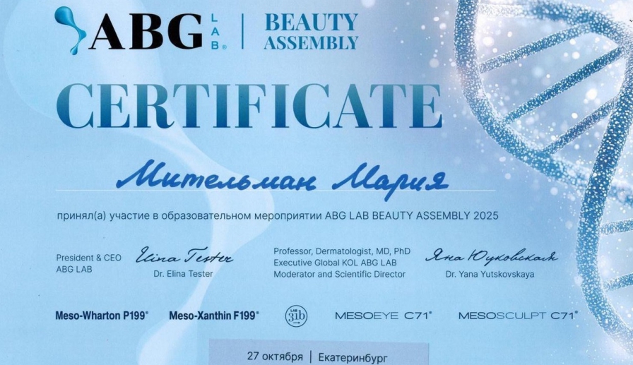В конце октября наш врач- дерматокосметолог Мария Мительман приняла участие в образовательном мероприятии ABG LAB BEAUTY ASSEMBLY 2025
