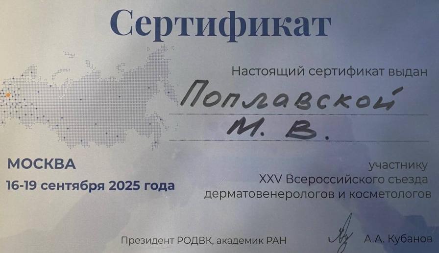 В середине сентября наш врач-дерматокосметолог Марина Поплавская стала участником XXV Всероссийского съезда дерматовенерологов и косметологов